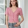 Women’s Spring Autumn Slim Tops Long Sleeve O Neck Sheer Lace Floral T-shirts